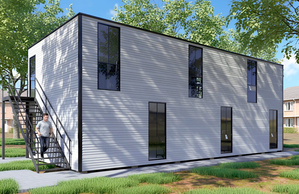 Todos nuestros módulos están diseñados para unirse de forma sencilla y rápida tanto en planta como en altura para formar ambientes mayores adaptados a las necesidades de espacio de cada proyecto. Nuestro sistema modular permite la construcción de edificios prefabricados en muy poco tiempo y con costes reducidos respecto a la construcción tradicional.