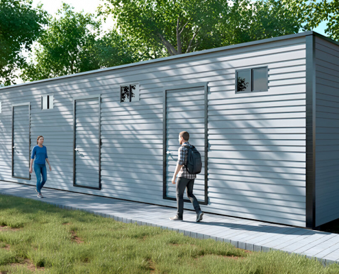 Si bien disponemos de módulos con dimensione y caraterísitas estándar, es habitual adaptar el diseño de acuerdo a las necesidades del cliente, tanto en dimensiones, alturas, acabados o instalaciones especiales. Todos nuestros módulos se pueden adosar en planta y hasta 5 alturas.