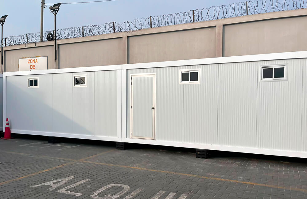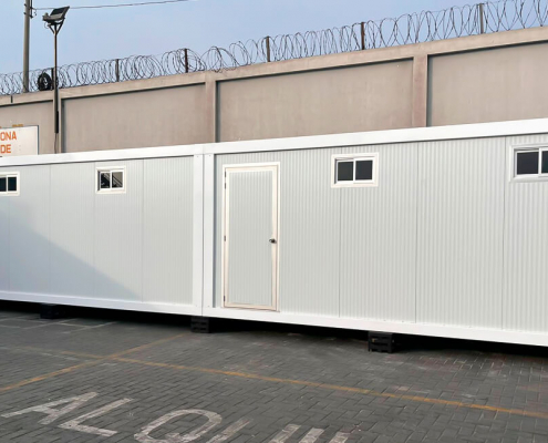 El proyecto consistió en la implementación de un conjunto modular diseñado para uso como oficinas, concebido para ofrecer funcionalidad, confort y rápida puesta en operación. La solución incluyó un primer bloque de 115 m² destinado a áreas administrativas, complementado por un bloque independiente de 14 m² para servicios sanitarios y un tercer bloque de 57.60 m² destinado a vestuarios, logrando una distribución eficiente y adaptable a las necesidades operativas del cliente.