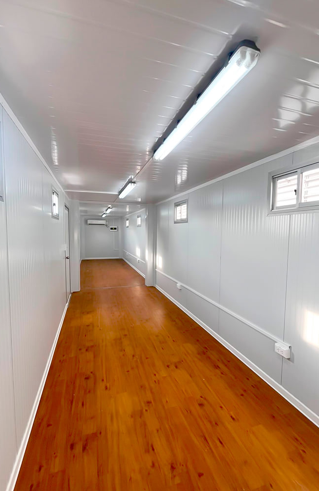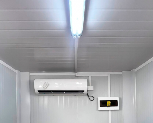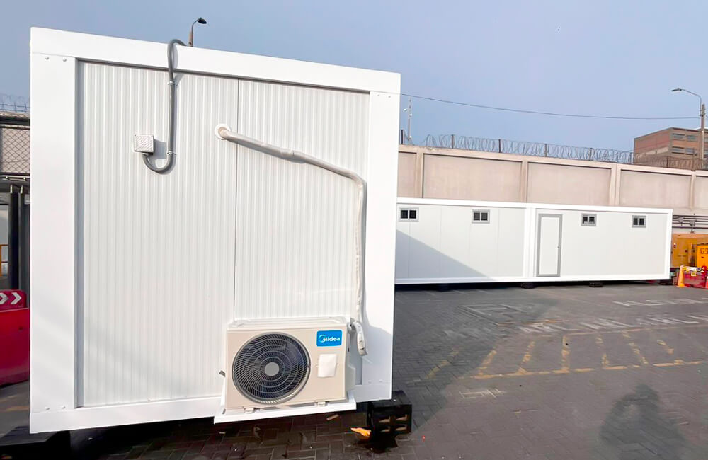 Como parte del alcance integral del proyecto, se incorporaron instalaciones eléctricas, extractor de aire, sistemas de aire acondicionado y mobiliario, entregando espacios completamente equipados y listos para su uso. Asimismo, Alquimodul asumió las labores de traslado y montaje en obra, asegurando una implementación eficiente, segura y alineada con los requerimientos técnicos del proyecto.