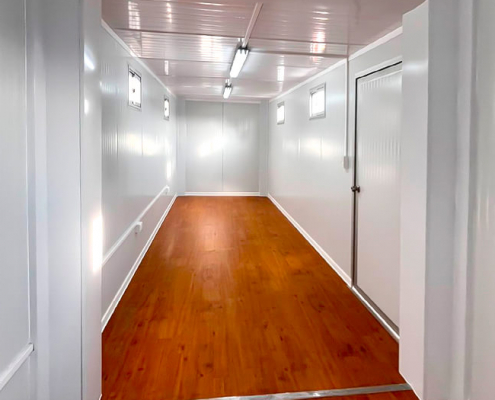 La construcción se desarrolló mediante nuestro sistema de Construcción Modular (CM), garantizando precisión en fabricación, control de calidad en planta y una ejecución ordenada en cada etapa. Este enfoque permitió optimizar tiempos de entrega y asegurar un alto estándar en acabados, manteniendo la flexibilidad característica de las soluciones modulares para futuras ampliaciones o reconfiguraciones.