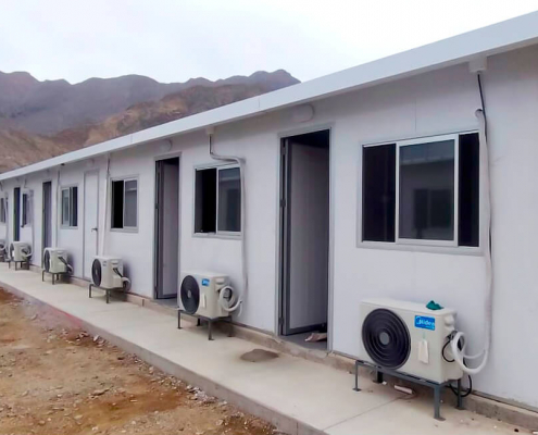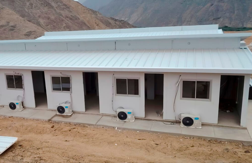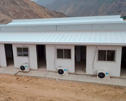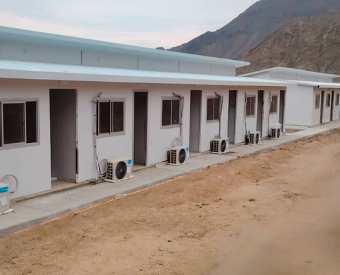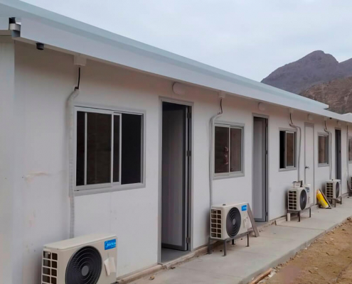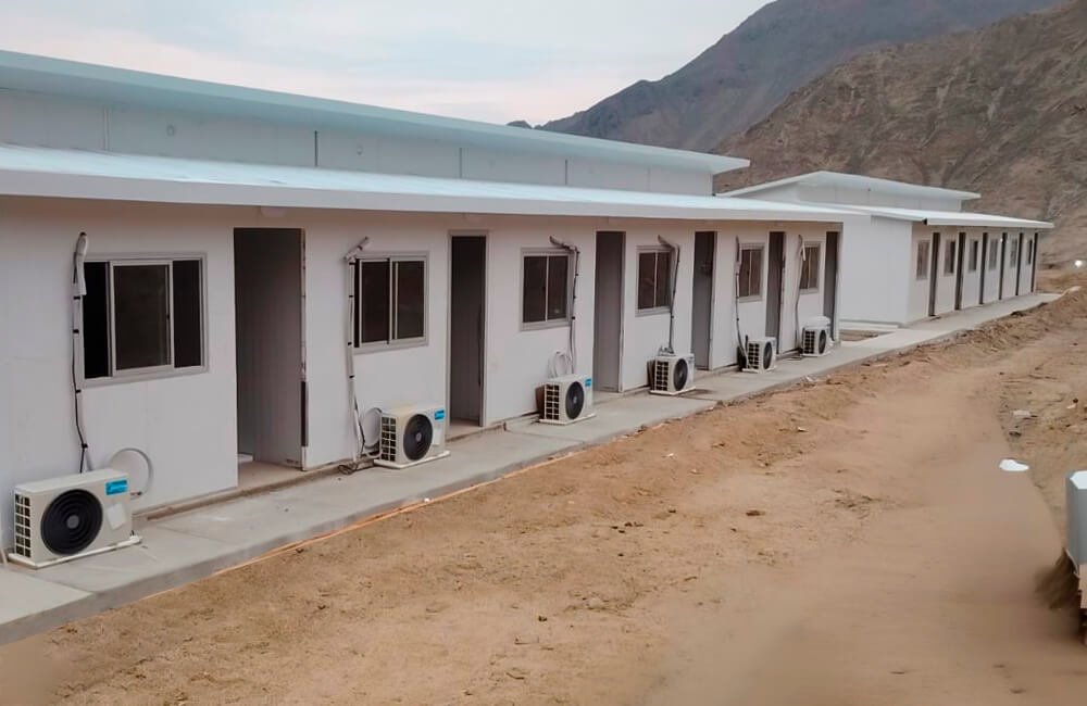 Adicionalmente, los módulos fueron entregados completamente equipados con instalaciones sanitarias, sistema de aire acondicionado, detectores de humo e instalaciones eléctricas, asegurando condiciones adecuadas de habitabilidad, seguridad y confort para el personal. Este proyecto refleja una vez más las ventajas de la construcción modular panelizada como una solución eficiente, flexible y confiable para campamentos mineros.